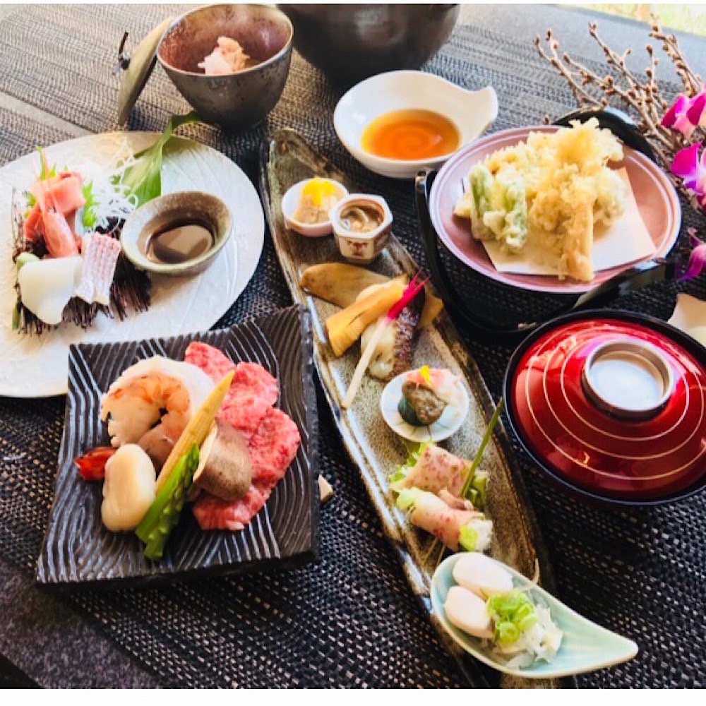 A 10-course Kyoto Kaiseki dinner presented Omakase-style by the Chef. This intimate dining experience features fresh sashimi, seasonal seafood specialties, locally-sourced meats, and traditional Japanese delicacies carefully selected each day. *Vegetarian, Vegan, and Gluten-Free Kaiseki options also available.