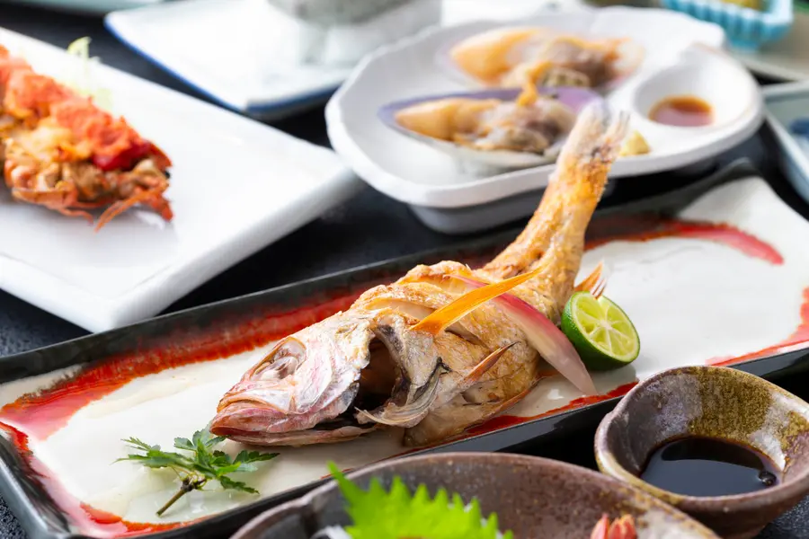 This 9-course kaiseki experience highlights the rich flavors of Kanazawa, featuring grilled nodoguro (blackthroat seaperch) and crispy tempura made with Kaga vegetables and more. Also includes: appetizer, assorted sashimi, Kanazawa’s famous jibuni dish, grilled seafood, and more.